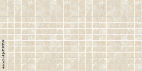 Fototapeta premium a seamless pattern of perfectly square, glossy muted beige tiles with white grout