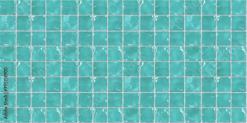 © Coppi AI, Fototapeta premium a seamless pattern of perfectly square, glossy teal tiles with white grout
