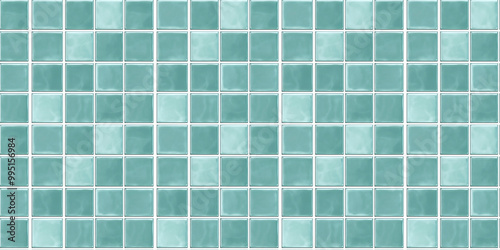 Fototapeta premium a seamless pattern of perfectly square, glossy teal tiles with white grout