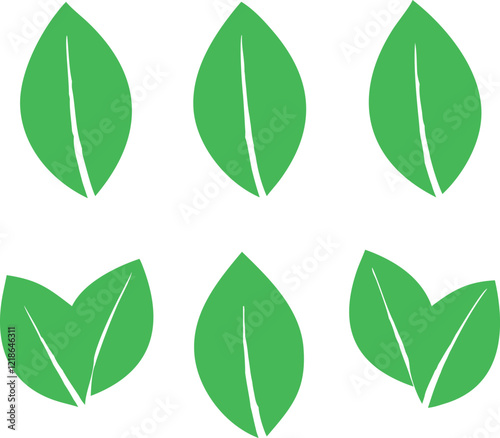 © zahidID: #10462466, Naklejka premium A seamless pattern of simple, stylized green leaf shapes on a pure white background.