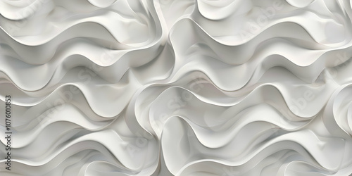 © FEEZAN ALI, Obraz premium A seamless pattern of white, wavy 3D shapes with subtle shadows
