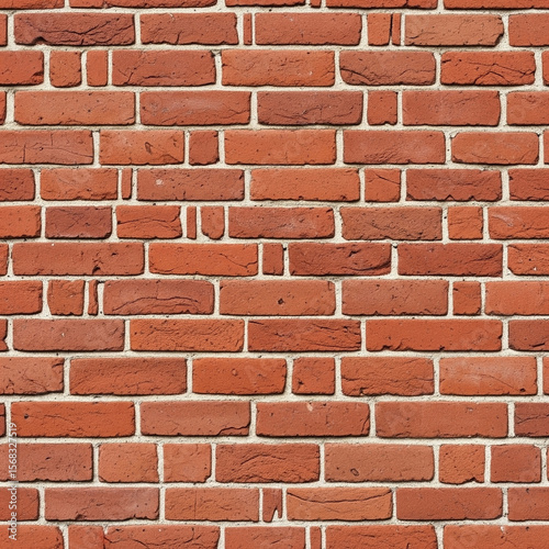 Fototapeta premium A seamless red brick wall texture, evenly aligned old bricks, detailed mortar lines, natural lighting, 4K photorealistic, top-down view, flat surface, no shadows, suitable for architecture design back