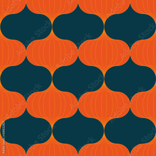 © rysunki.malunki, Fototapeta premium A seamless vector pattern with orange lantern on a dark teal background. Surface print design.