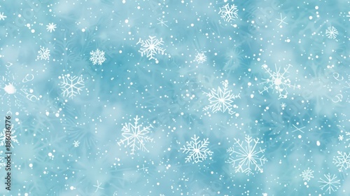© mashimara, Obraz premium A seamless winter pattern featuring various white snowflakes on a blue background, creating a festive and chilly atmosphere.