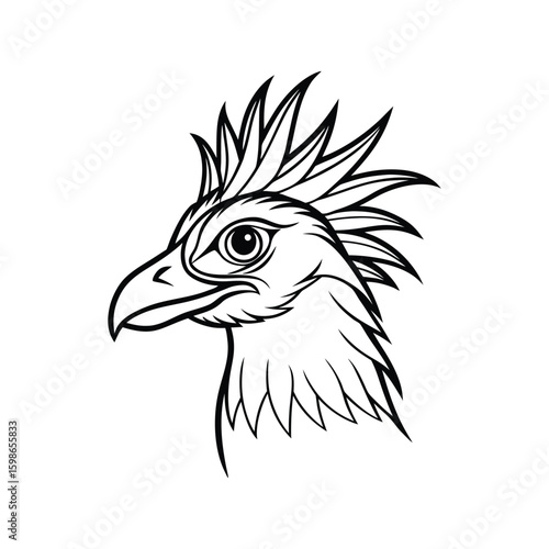 © Anirban, Obraz premium a secretarybird bird head line art silhouette vector illustration on white background