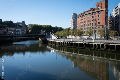 Naklejka premium A section of the Paseo de Uribitarte in Bilbao shot from the other side of...