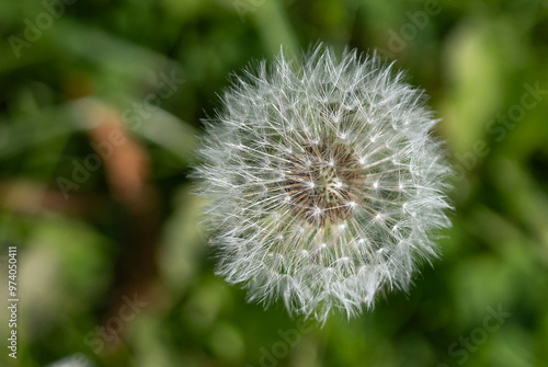 Fototapeta premium a Seed head of a dandelion on a lawn
