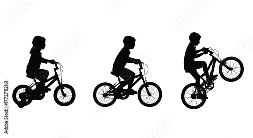 © Tutul, Fototapeta premium A sequence showing a child learning to ride a bicycle with stages