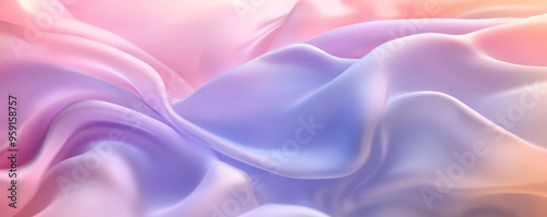 Fototapeta premium A serene abstract background with flowing 3D silk fabric in a gradient from soft lavender to pale pink. The fabric waves create a gentle, calming effect.