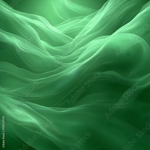 © AIGC JOE, Obraz premium A serene abstract composition featuring delicate green flowing fabrics, creating an ethereal and calming atmosphere that evokes tranquility and fluidity.