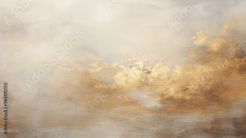 © AthayaStock, Naklejka premium A serene abstract landscape featuring soft clouds and warm golden tones, evoking tranquility and contemplation.