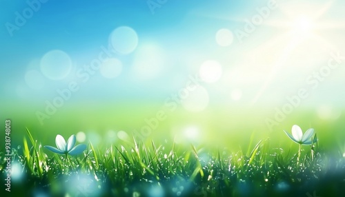 © Miva, Obraz premium A Serene and Colorful Landscape of Sunlit Greenery
