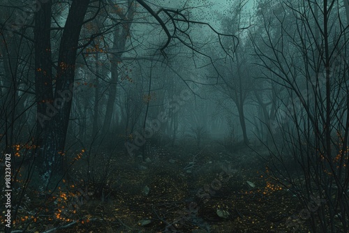 Naklejka premium A serene and mysterious forest scene with a winding path leading through...