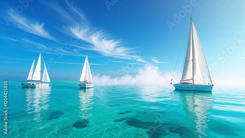 Fototapeta premium A serene and vibrant ocean scene showcasing clear blue waters gentle waves...
