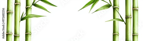 Obraz premium A serene arrangement of green bamboo stalks framing a blank space, perfect...