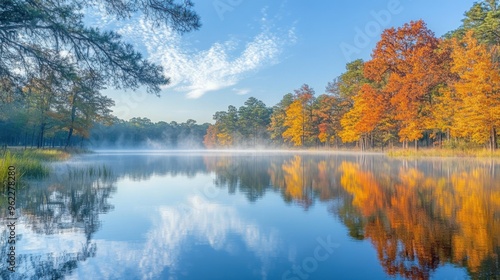© Rinowz, Fototapeta premium A serene autumn morning at a lake