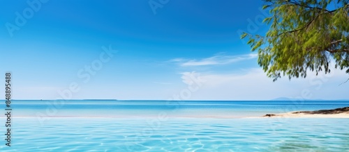 © Ilgun, Fototapeta premium A serene beach and pool setting with a clear blue water background ideal for use as a copy space image