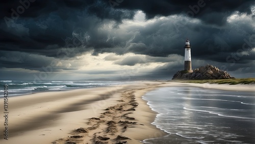 © MST, Fototapeta premium A serene beach scene under a bright, clear blue sky.