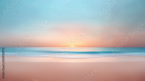 © Andri, Fototapeta premium A serene beach sunset with golden sunrays piercing through scattered clouds, reflecting on calm ocean waves. Minimalist composition with vast empty sky and smooth sand for copy space.