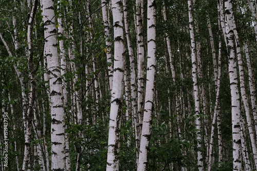 Obraz premium A Serene Birch Forest Landscape featuring Lush Greenery and a calm, peaceful atmosphere
