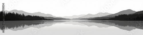 Fototapeta premium A serene black and white landscape of mountains reflected in a calm lake,...