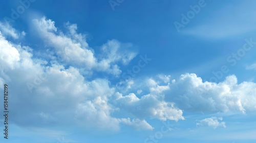 Fototapeta premium A serene blue sky adorned with fluffy white clouds, perfect for depicting...