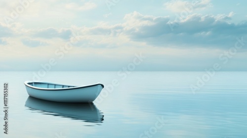 Naklejka premium A serene boat floating on calm waters.