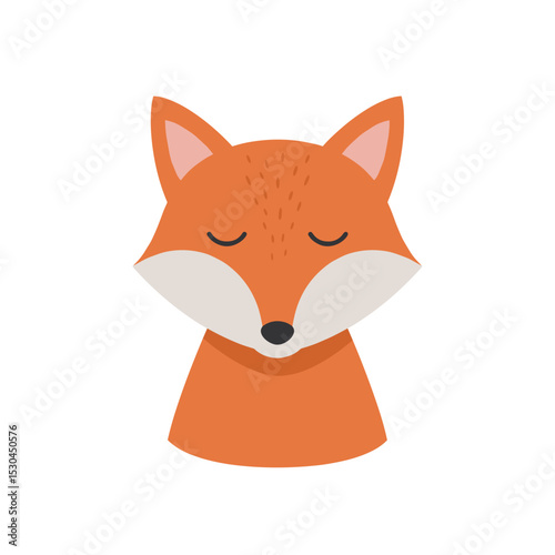 © Elsha, Obraz premium A serene cartoon fox with closed eyes, set against a simple white background
