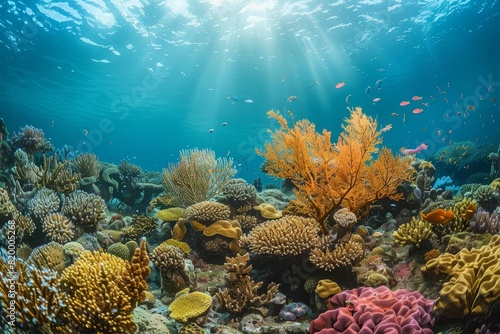 Obraz premium A serene coral reef with diverse marine life, promoting ocean conservation