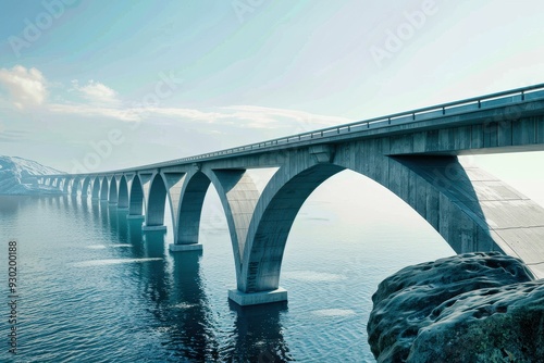 Fototapeta premium A serene drive across a stunning coastal bridge at twilight, reflecting soft...