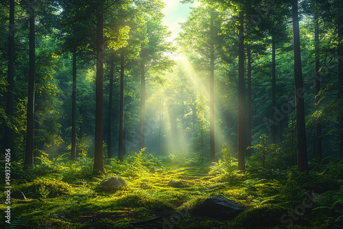 © Roman, Obraz premium A Serene Early Morning in a Dense Mossy Forest