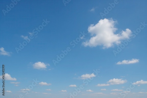 Naklejka premium A serene expanse of blue sky dotted with fluffy white clouds, symbolizing...