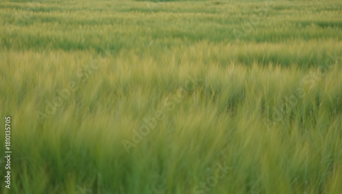 Obraz premium A serene field of green crops gently swaying in the wind, capturing the...