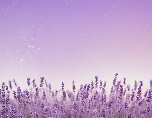 © Nikolay, Naklejka premium A serene field of lavender flowers in soft purple hues against a dreamy pastel sky.