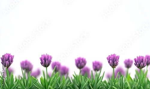 Fototapeta premium A serene field of vibrant lavender flowers blooming under a clear sky,...