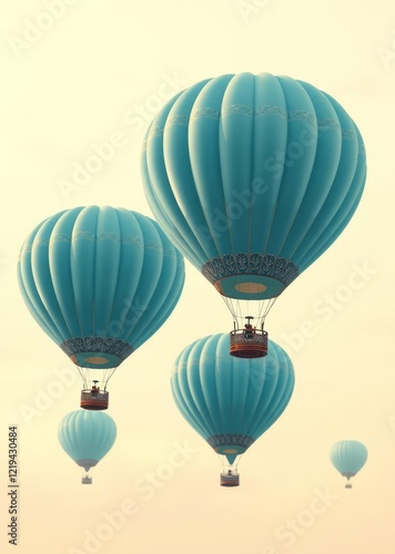 Obraz premium A serene flight of light blue hot air balloons soaring through a pastel sky...
