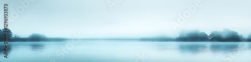© Huzaifa, Fototapeta premium A serene, foggy morning with a clear sky and space for text