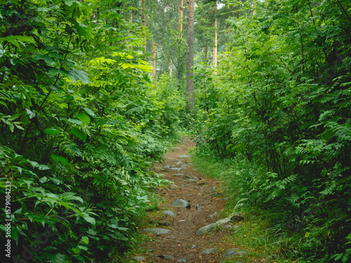 © Joose, Fototapeta premium A Serene Forest Path Leading Through Lush Greenery and Tall Trees