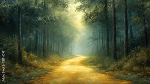Obraz premium A serene forest pathway illuminated by soft sunlight, inviting exploration...