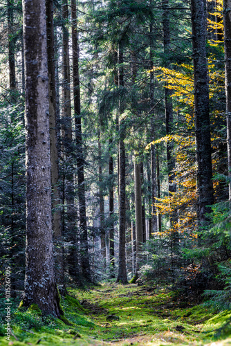 © AdobeTim82, Fototapeta premium A Serene Forest Pathway that Sparkles with Glimmering Light and Inviting Atmosphere