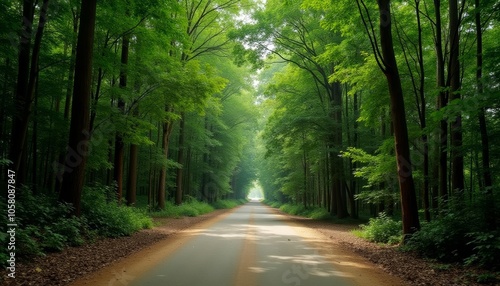 © SwathiFX, Naklejka premium A serene forest road inviting exploration