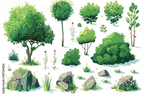 Fototapeta premium A serene forest scene featuring various types of trees and shrubs