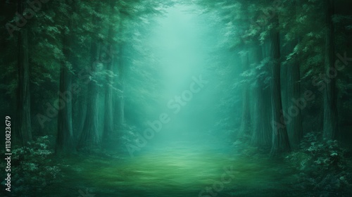 © Wattanachai, Obraz premium A serene forest scene with soft, diffused light filtering through tall trees creates a tranquil atmosphere, Ideal for nature-themed projects, mindfulness applications, or backgrounds in digital art,