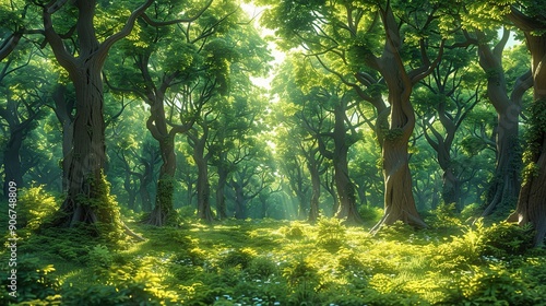 © DARIKA, Obraz premium A serene forest with sunlight filtering through the trees, symbolizing the importance of earth conservation and the impact of climate change on natural habitats. high resolution Illustration, in the