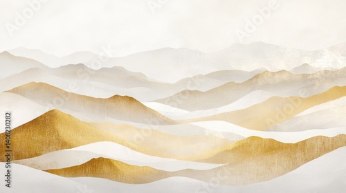 © Anak, Obraz premium A serene, golden mountain range landscape painting.