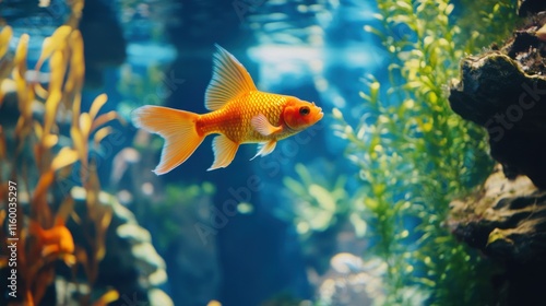 Fototapeta premium A serene home aquarium with exotic fish and aquatic plants, Aquarium tanks, aquatic plants