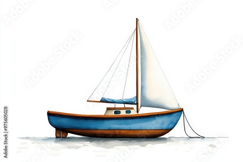 © Chano_1_na, Fototapeta premium A serene illustration of a blue sailboat gently floating on calm waters, capturing a tranquil maritime scene.