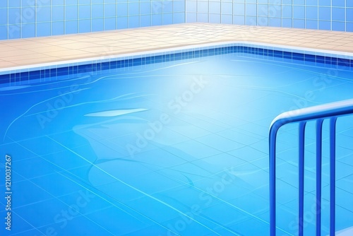 Fototapeta premium A serene indoor swimming pool with clear blue water and tiled walls, creating...