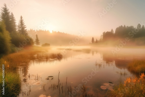 Fototapeta premium A serene lake nestled amidst lush greenery