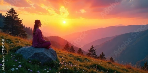 Fototapeta premium A serene landscape at sunrise, embodying the peaceful pursuit of spiritual enlightenment and inner peace Perfect for meditation, mindfulness, and yoga themes , quiet, cosmos, faith